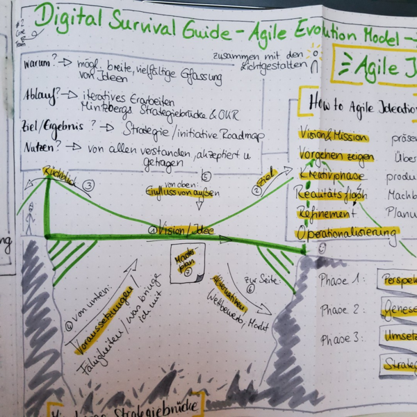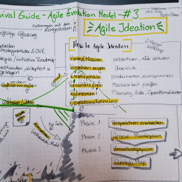 Wenn man eine Idee hat, begleitet das "Agile Evolution Model" die Umsetzung bis zur Entwicklung eines Prototypen. Die unterschiedlichen Bausteine liefern nützliche Erkenntnisse, die direkt